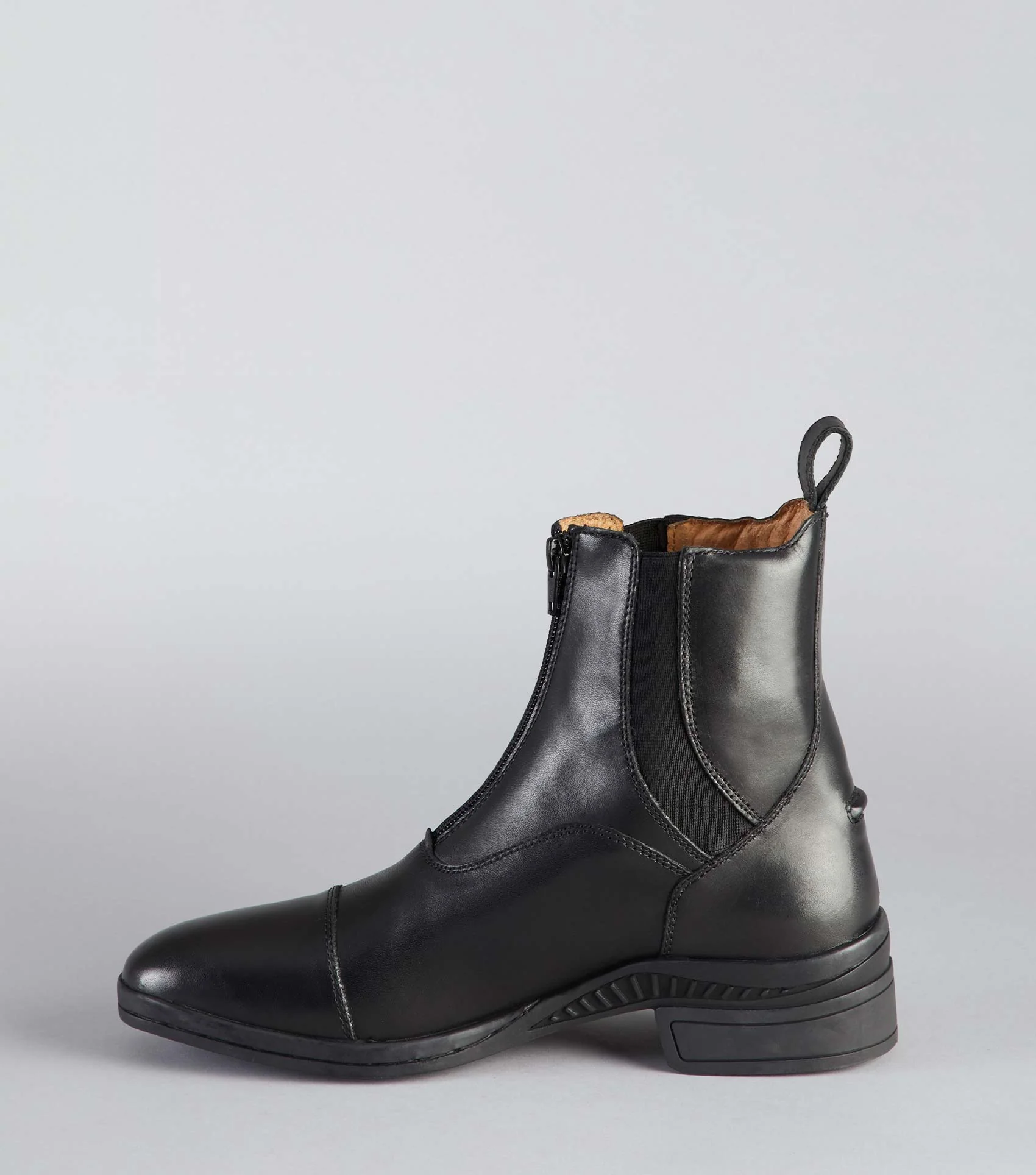 A refined and modern evolution of the classic 'Chelsea' paddock boot, the Balmoral leather paddock boots provide an elegant, close ankle fit and a modern aesthetic. The subtle, shaped elastic side panels provide ease of fitting along with a front zip and rear pull tab.