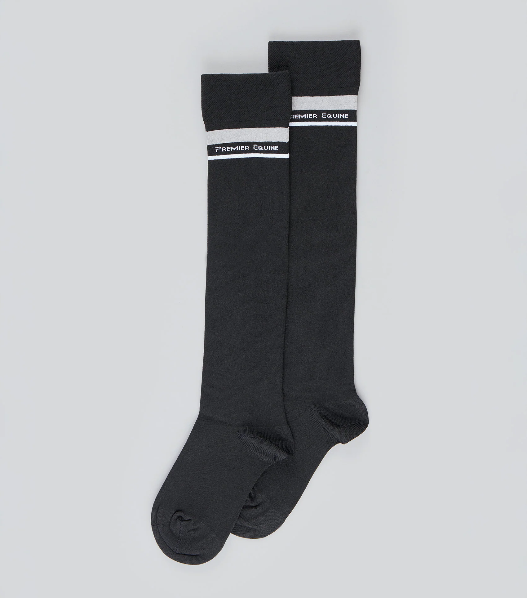 Finished with Premier Equine branding to add a touch of sophistication to your equestrian wardrobe. These knee length socks are an essential and ideal for pairing with long boots or chaps.Â