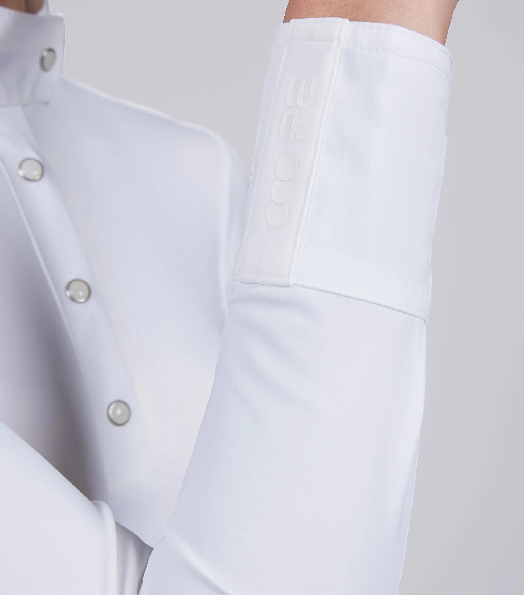 Finished with a stylish stand collar and pleated cuffs: both accented with subtle tonal PE branding, the Rossini Lycra Show Shirt is everything you need to complete your competition look.Â